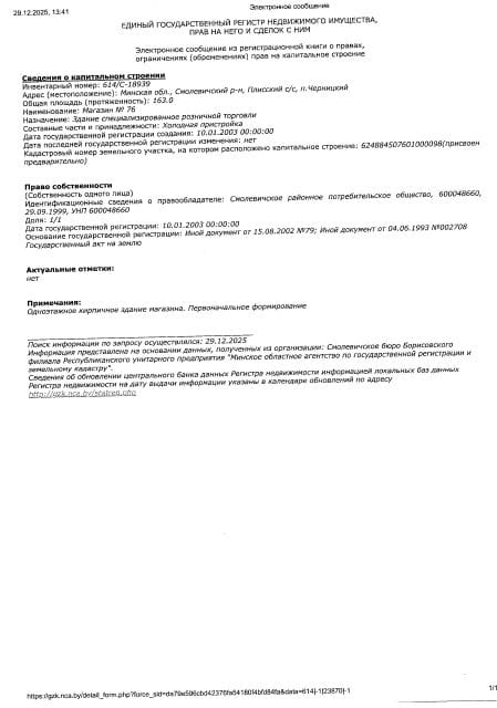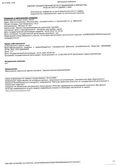 Право собственности - Хойникское районное потребительское общество.